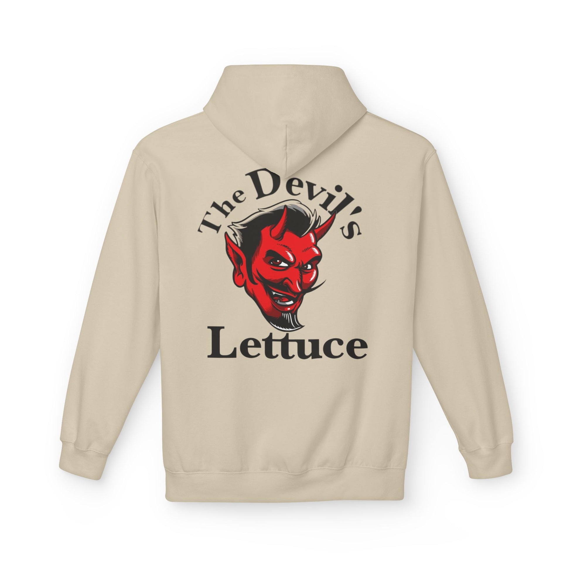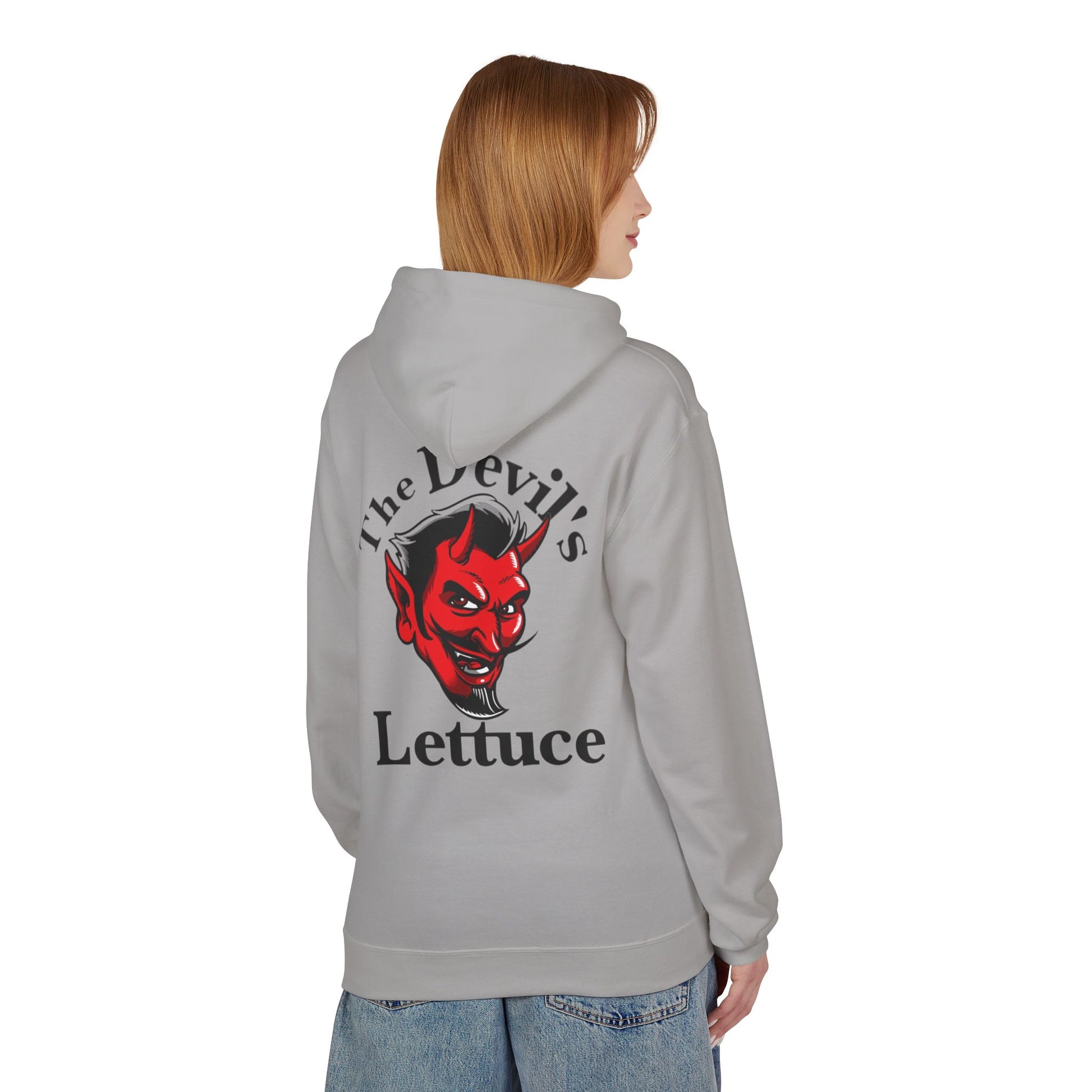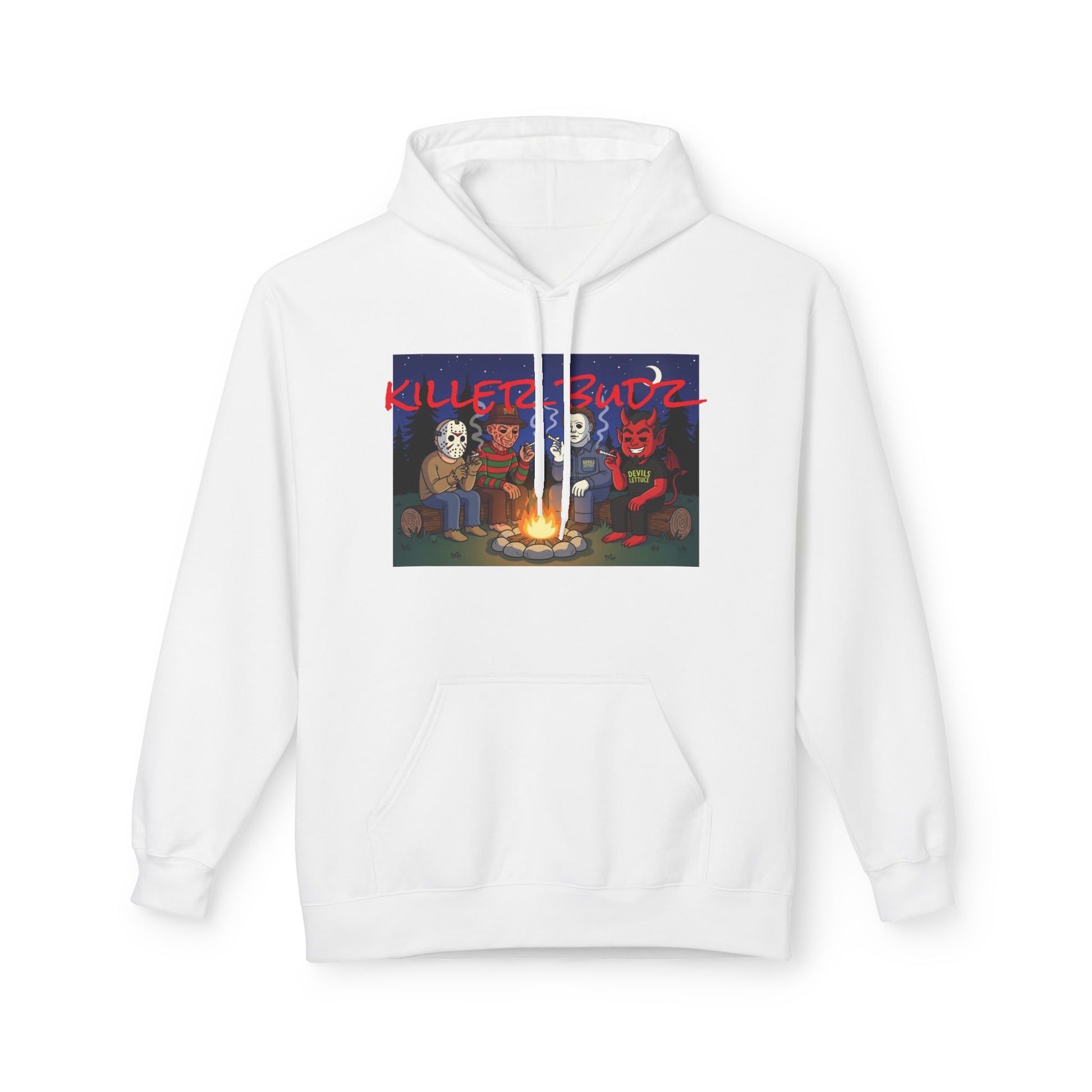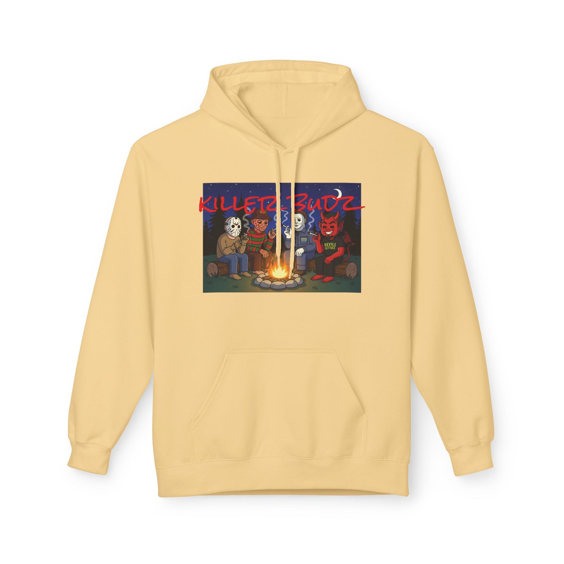 Killer Budz Fleece Hoodie with Devil's Lettuce Print, Unisex Cozy Sweatshirt for Campfire Nights, Halloween Gifts, Streetwear